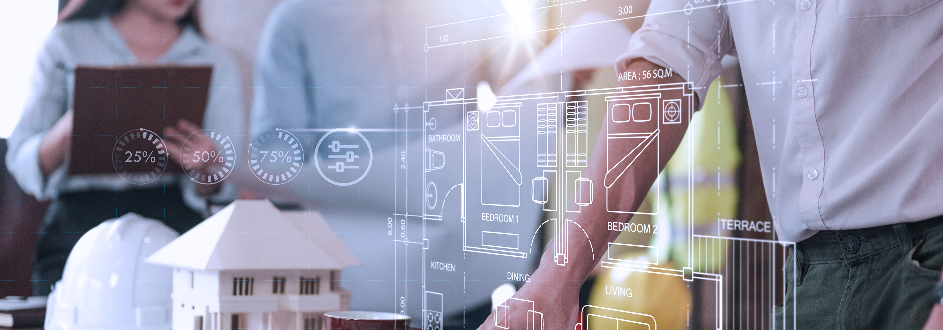 プロジェクトの企画から竣工まで、発注者様の立場に立って、全体を俯瞰する業務です。各社業務調整、コスト、スケジュール、品質などの要素をバランス良く管理し、企画の評価や事業費の検証、運営計画の作成など「事業計画の遂行」を主な目的とし、より早い段階からプロジェクトに参画するのが特徴です。