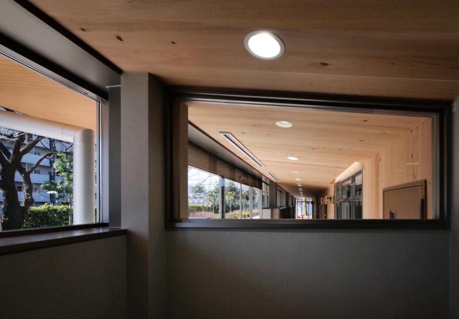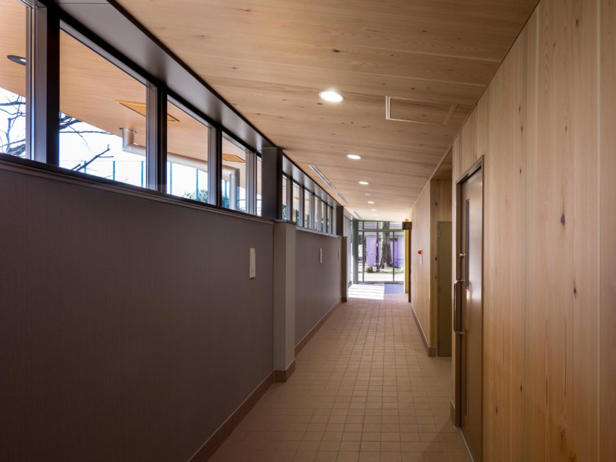 野球場・テニスコート・陸上グランドを併設する都立公園の中の施設受付・シャワー・更衣室・多目的室のある管理所。外部に開かれた木質系の軒天上と木の壁が優しく人を導き入れ、地面の土から隆起した塗り壁が公園内の施設として公園の自然との一体感を創り出している。