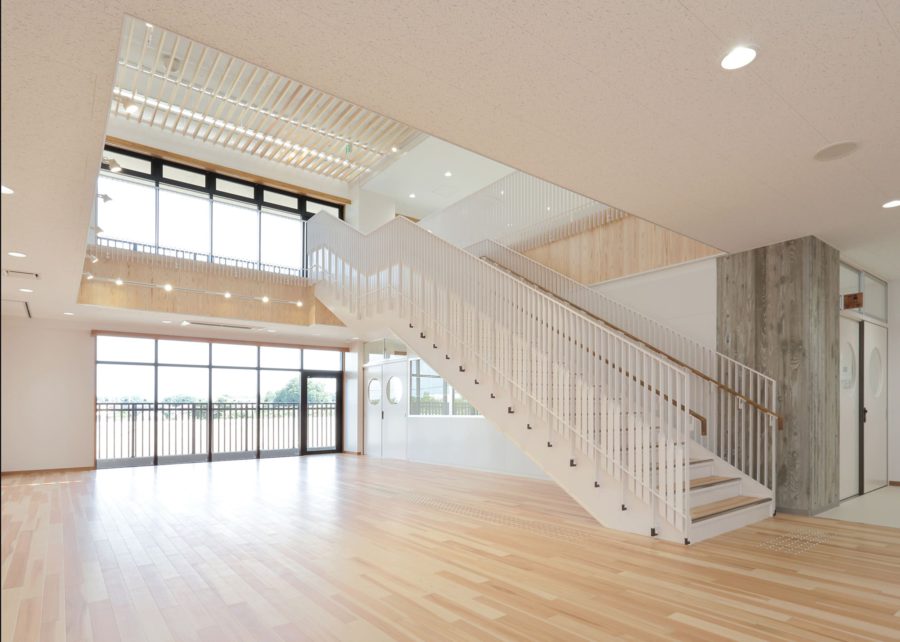生徒数増加に伴う小学校の特別教室棟の増築。学校のシンボルであるケヤキをモチーフとし「ケヤキの学び舎」をキーワードに内外装に木質系の意匠をあしらった計画としました。建物内部は吹き抜けを持つホールを中心とし、各教室がアクセスできる計画とすることで学童が集う賑わいのある校舎になるよう配慮しました。計画建物は既存校舎の北側に位置するため、日照条件に制約がある中、ハイサイドライトや北側に連続した開口部を設けたことで、安定した自然採光を建物内に取り込むことのできる計画としました。